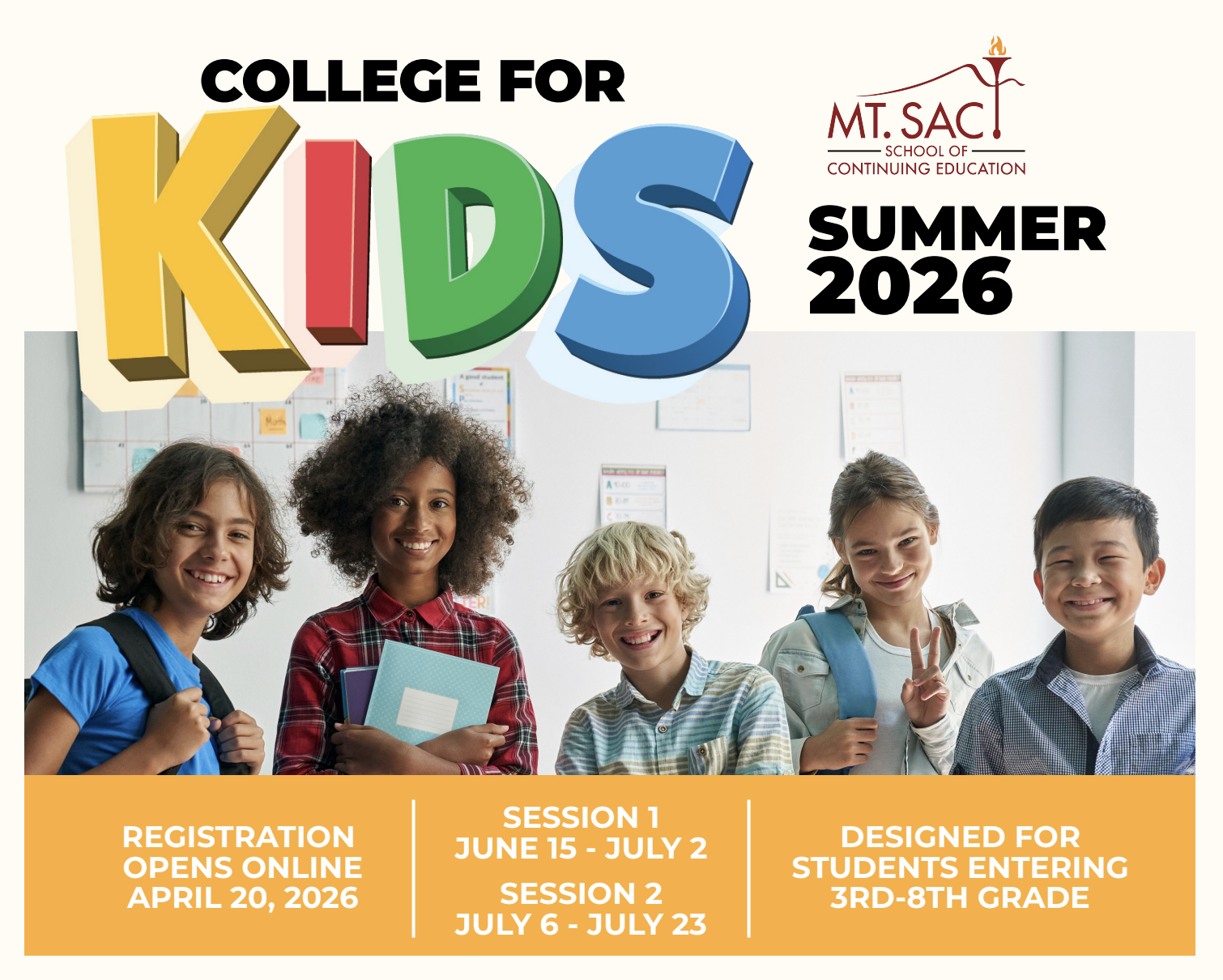 Students in 6th through 8th grade are invited to signup for our Middle School Session as part of Mt. SAC’s College for Kids program.